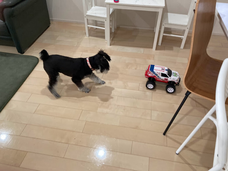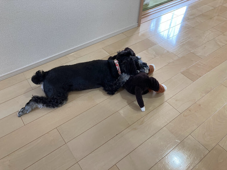 結構いろんな場面で走っていて、その度に転びそうになる程フローリングで滑っている姿が見られるようになってきました。