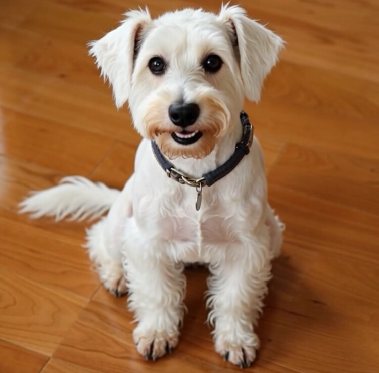 ミニチュアシュナウザーの白い子犬は、希少な毛色で人気の高い犬種です。
