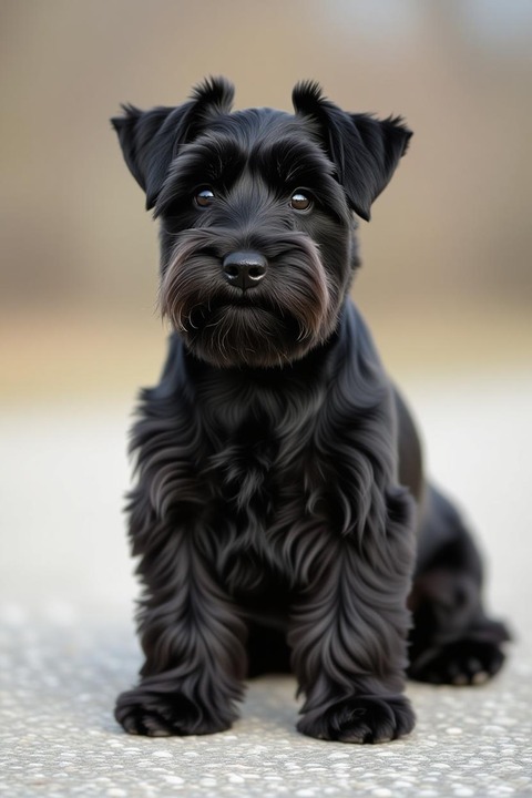 黒一色の重厚感は、シュナウザーの特徴的な眉毛や口ひげと相まって、独特の魅力を放ちます。
